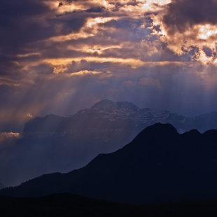 Rakousko, Hohe Tauern, Krimml, První paprsky -